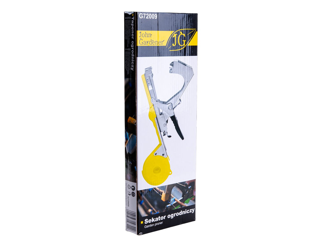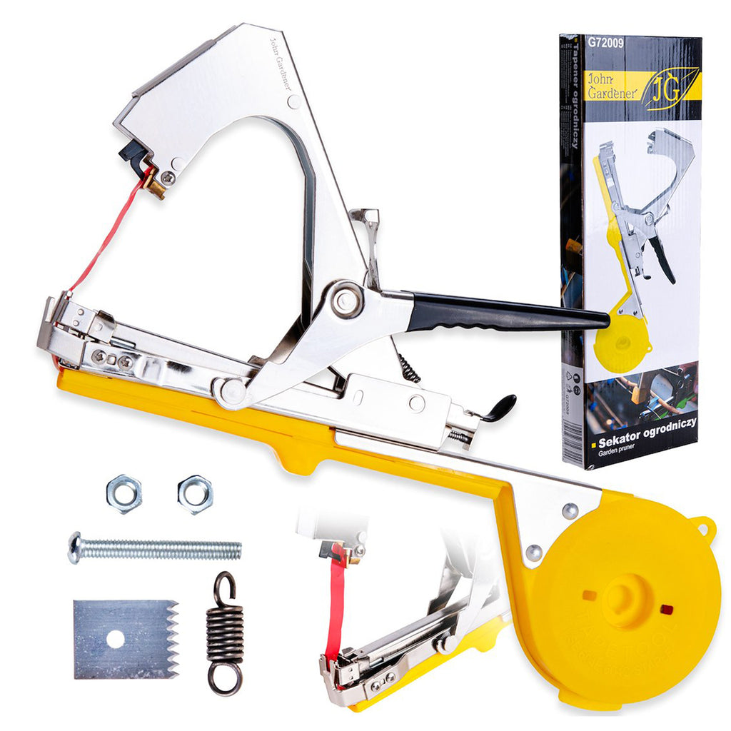 Acest APARAT DE LEGAT VITA DE VIE, 32x20CM JOHN GARDENER este conceput pentru legarea rapida si uniforma a plantelor in gradini, pepiniere si sere. Aparatul este fabricat din metal si plastic rezistent, avand o constructie solida si usor de manevrat. Se utilizeaza capse cu dimensiunea de 6 x 4 mm si banda cu diametrul de 10 mm, potrivita pentru fixarea stabila a tulpinilor fara a le deteriora. Designul ergonomic permite o utilizare confortabila si precisa. Setul include aparatul de legat, o banda, capse, un surub de rezerva, piulite, arc si lama.