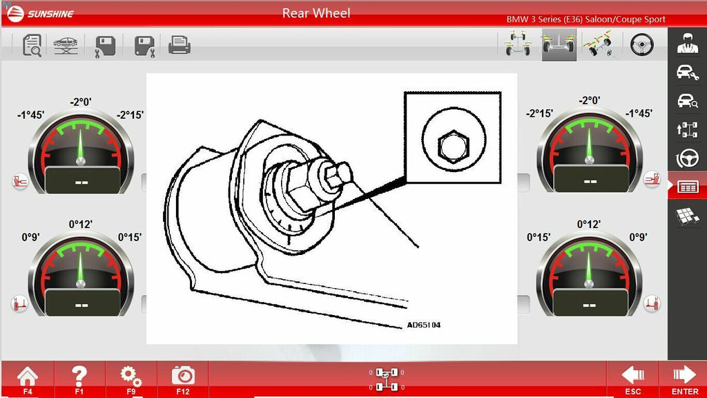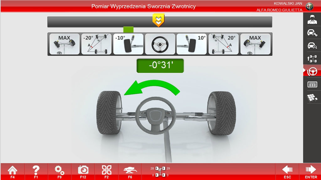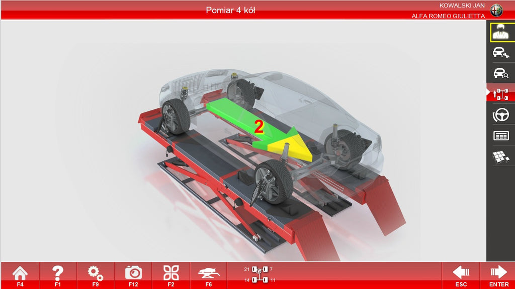 Programul ofera functii pentru salvarea rezultatelor in timpul ridicarii vehiculului, precum si posibilitatea de reglare a unghiurilor fara roata, cu ajutorul unor adaptoare speciale.