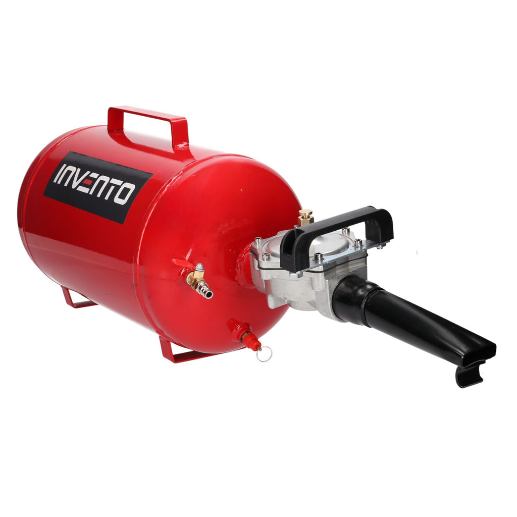 Aceasta BUTELIE EXPLOZIE AER, TUN DE AER 18L INVENTO este destinata umflarii rapide a anvelopelor fara camera prin soc de aer. Dispozitivul este prevazut cu un rezervor de aer cu capacitatea de 18 litri si functioneaza la o presiune de lucru de 8 bar. Rezervorul dispune de carcasa din otel, iar evacuarea aerului se face printr-o duza din fonta.