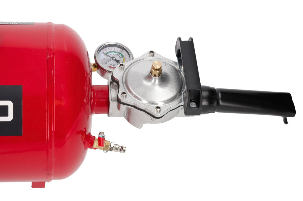 Butelia este echipata cu supapa de eliberare rapida si cu manometru pentru citirea presiunii. Produsul este destinat utilizarii la anvelope tubeless pentru autoturisme, autoutilitare si camioane. Greutatea dispozitivului este de 12 kg.