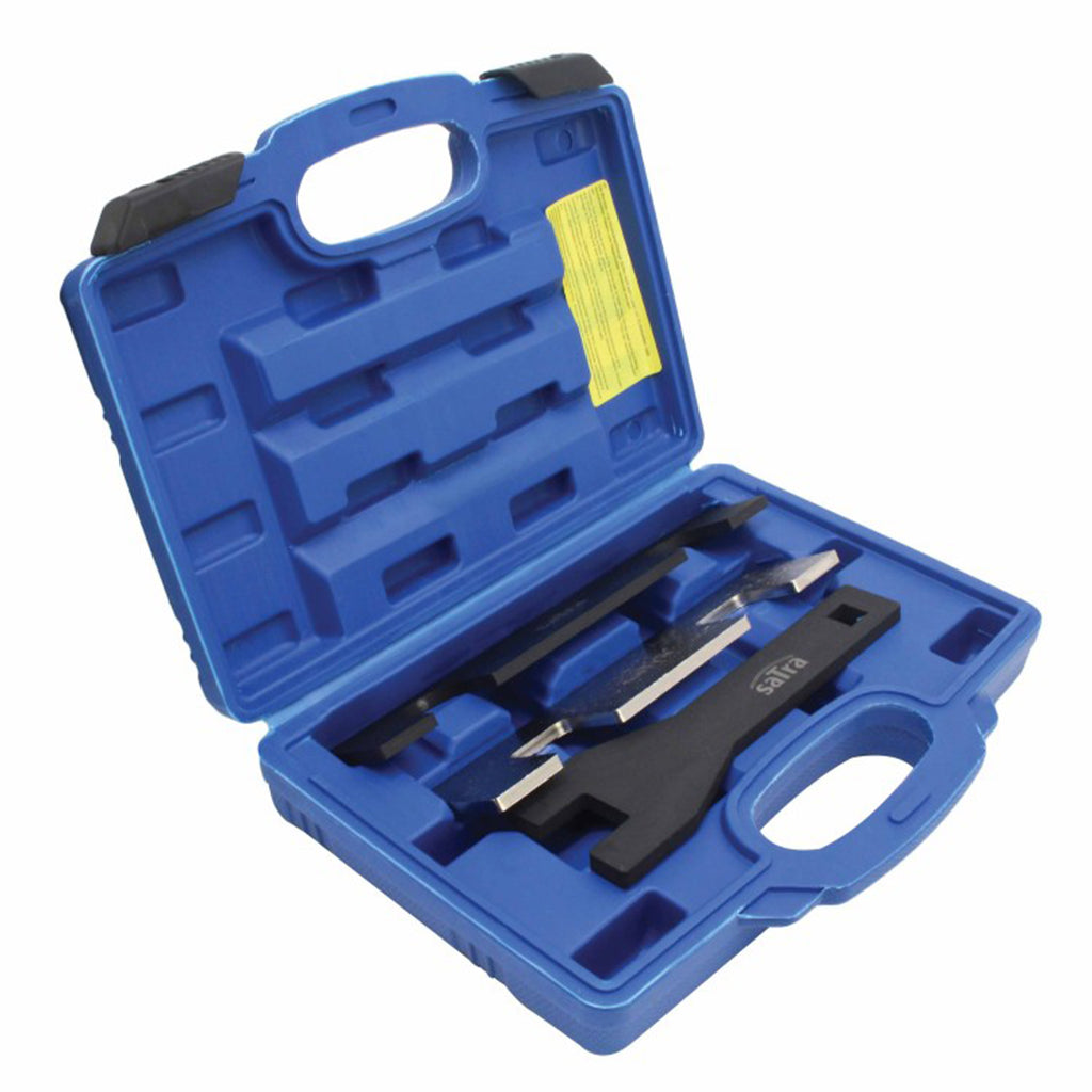 CALE BLOCATOR FIXARE DISTRIBUTIE OPEL 1.0 1.4 1.5 TURBO este un set profesional SATRA destinat blocarii si reglarii sincronizarii in motoarele pe benzina cu transmisie prin lant, utilizat la modelele Opel echipate cu motoare turbo 1.0, 1.4 si 1.5, dar compatibil si cu alte motoare fabricate dupa 2014.