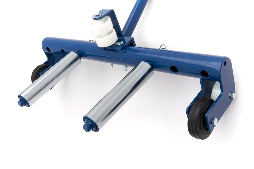 Constructia din otel A3 confera stabilitate si rezistenta in utilizare intensiva, iar sistemul reglabil de prindere permite adaptarea latimii intre 290 mm si 620 mm, astfel incat sa se potriveasca diverselor dimensiuni de roti. Rotile solide montate la baza ofera mobilitate si control in timpul deplasarii, asigurand un transport sigur al componentelor grele in interiorul spatiului de lucru.
