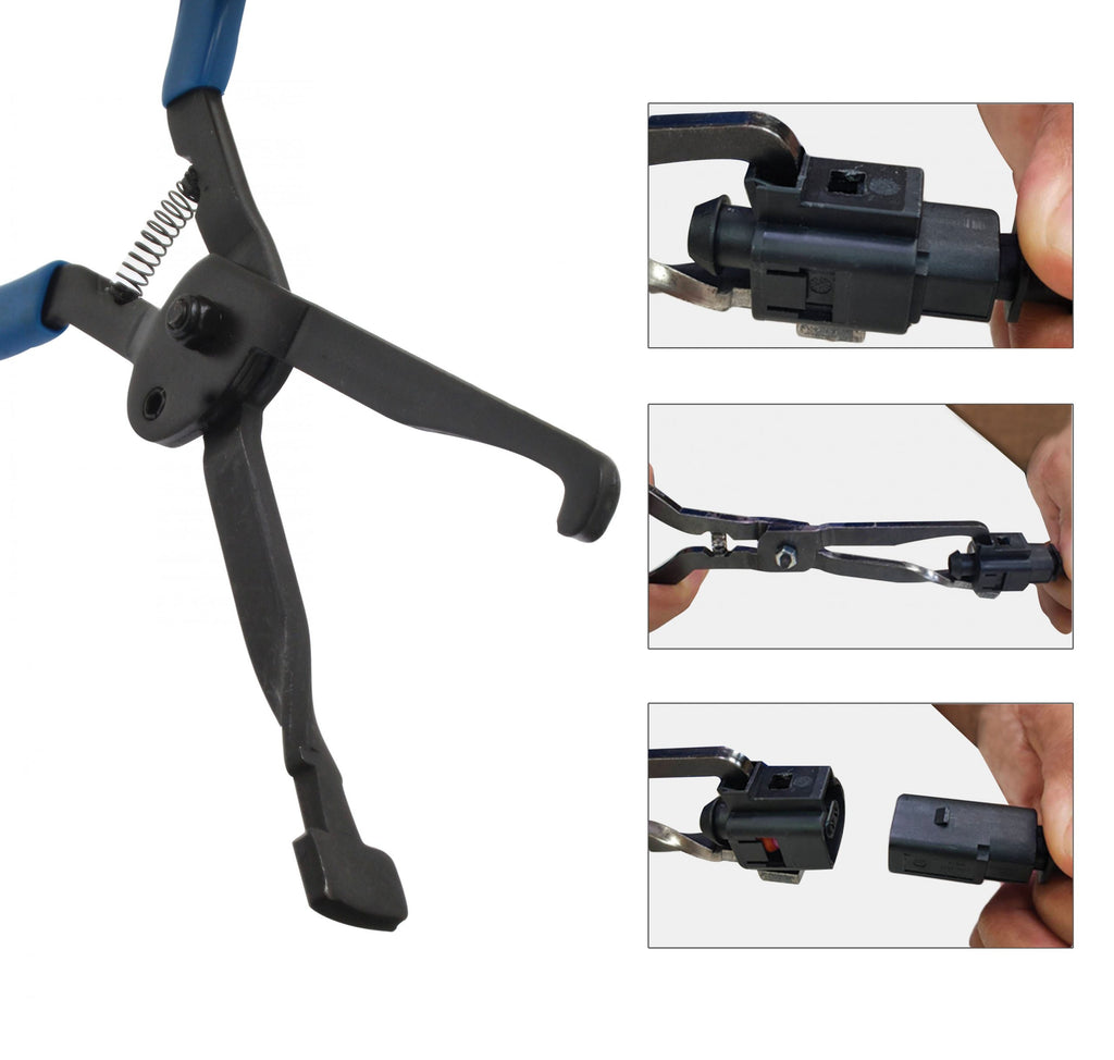 CLESTELE PENTRU DECUPLARE CONECTORI ELECTRICI AUTO este conceput pentru deconectarea blocurilor de conexiuni electrice din debitmetre, injectoare de combustibil, bobine de aprindere si alte componente similare.