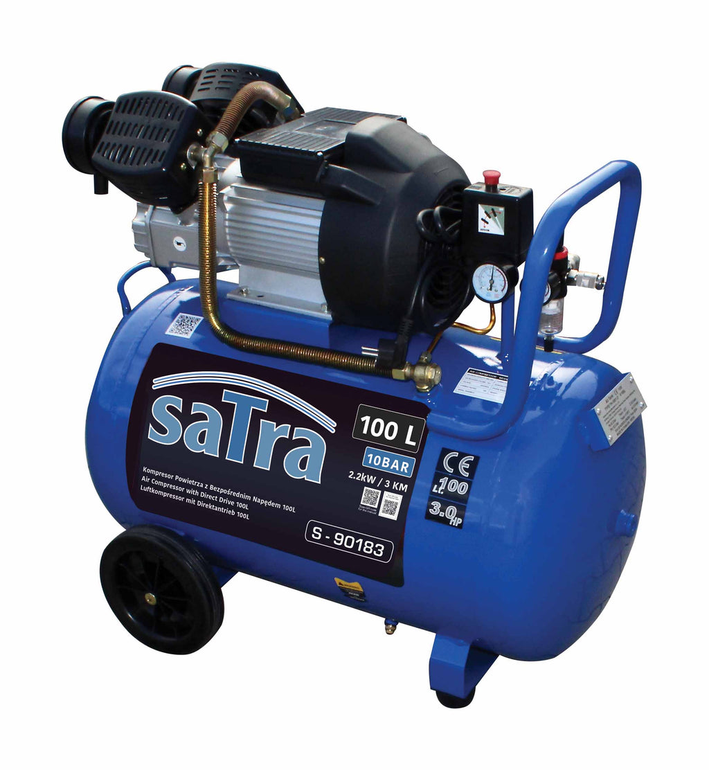 Rezervorul de 100 de litri este realizat din tabla groasa de otel si acoperit cu un strat de vopsea pulbere anticoroziva. Compresorul este prevazut cu vizor pentru nivelul uleiului, reductor de presiune cu manometru pentru presiunea de lucru, manometru pentru presiunea din rezervor si supapa de siguranta care protejeaza impotriva depasirii presiunii admise. Constructia robusta si protectia termica a motorului asigura o functionare sigura si de durata. Nivelul de zgomot in timpul utilizarii este de 92 dB, greutatea este de 52 kg, iar dimensiunile sunt 85 x 45 x 76 cm.