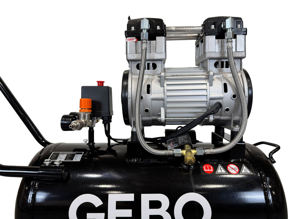 COMPRESORUL SILENTIOS 50L 2CP GEBO TOOLS are o capacitate a rezervorului de 50 litri si functioneaza la o presiune maxima si de lucru de 8 bari. Acesta este echipat cu un motor de 2 CP si doua cilindri. Alimentarea se face la o tensiune de 220 V, cu frecventa de 50 Hz. Viteza de rotatie a motorului este de 1400 rpm.