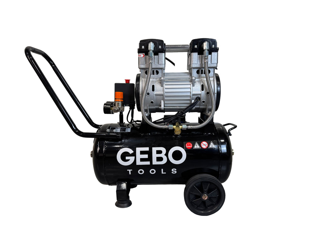 COMPRESORUL SILENTIOS FARA ULEI 30L GEBO TOOLS are o capacitate a rezervorului de 30 litri si functioneaza la o presiune maxima si de lucru de 8 bari. Acesta este echipat cu un motor de 2 CP si doi cilindri. Tensiunea de alimentare este de 220 V, cu frecventa de 50 Hz. Viteza de rotatie a motorului este de 1400 rpm.