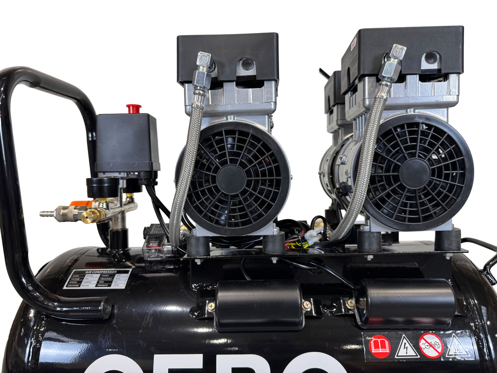 COMPRESORUL SILENTIOS FARA ULEI 50L GEBO TOOLS are o capacitate a rezervorului de 50 litri si functioneaza la o presiune maxima si de lucru de 8 bari. Este echipat cu un motor de 2 CP si patru cilindri. Alimentarea se realizeaza la o tensiune de 220 V, cu frecventa de 50 Hz. Viteza de rotatie a motorului este de 1400 rpm.