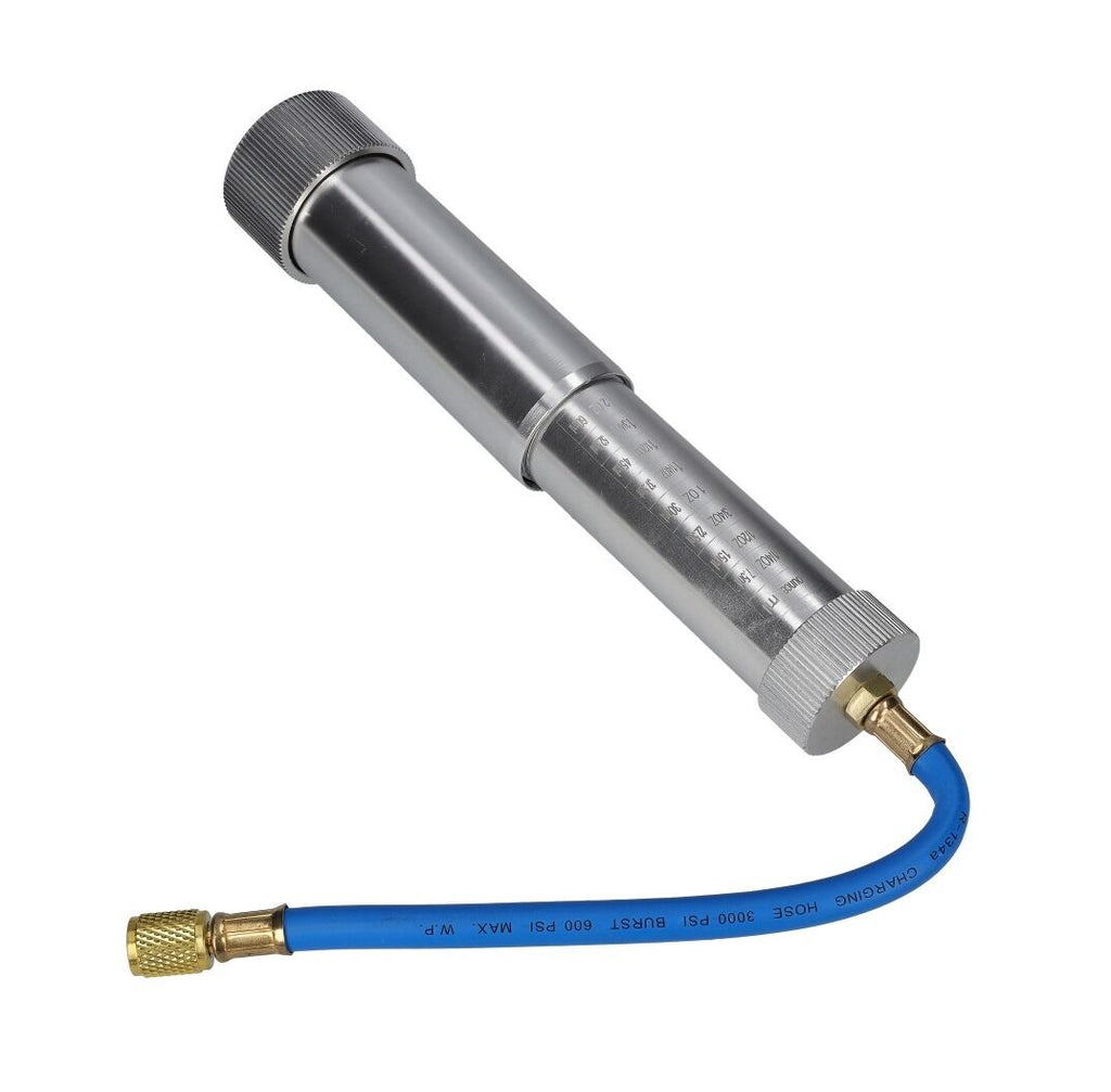 Dispozitivul are o capacitate maxima de 60 ml si este echipat cu un cuplaj rapid LP, ce permite conectarea si deconectarea simpla de la sistemul de lucru. Corpul este realizat dintr-un material plastic rezistent la ulei si radiatii UV, adaptat pentru utilizare intensiva. Dispozitivul este utilizat frecvent pentru detectarea scurgerilor de freon.