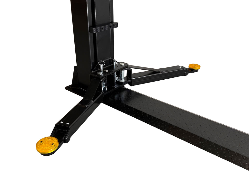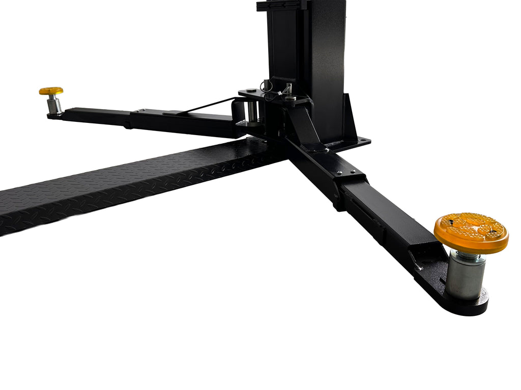 Acest model vine echipat cu patru inaltatoare de cate 7 cm, utile pentru adaptarea in functie de garda la sol a vehiculului. Sistemul de deblocare a sigurantelor este manual si ofera doua optiuni: fie separat, de la fiecare coloana, fie simultan, dintr-un singur punct, pentru o operare mai rapida si sigura. Bratele telescopice contribuie la o flexibilitate sporita in pozitionarea sub vehicul, facilitand lucrul cu o gama larga de autoturisme. Elevatorul se livreaza impreuna cu uleiul hidraulic necesar functionarii.