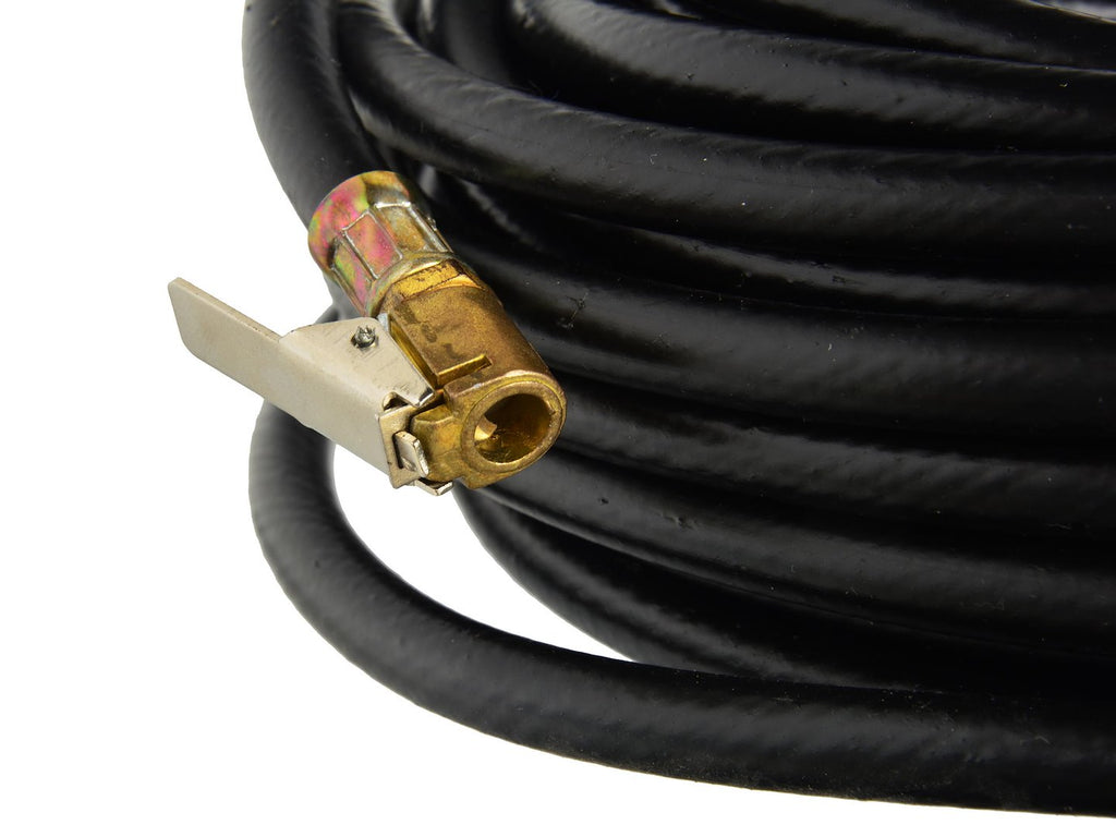 Acest FURTUN PNEUMATIC PENTRU UMFLAT ROTI 18M, CU RACORD M12 SI CAP VALVA - GEKO este destinat operatiilor de umflare a rotilor in aplicatii auto si industriale. Furtunul are lungimea de 18 metri si este prevazut cu racord cu filet M12. La capat este echipat cu duza de umflare pentru conectarea la valva rotii.