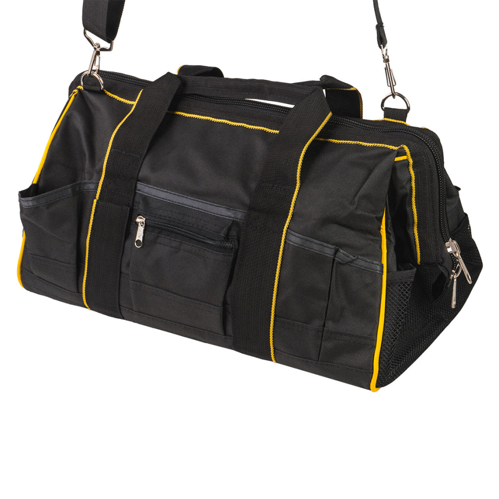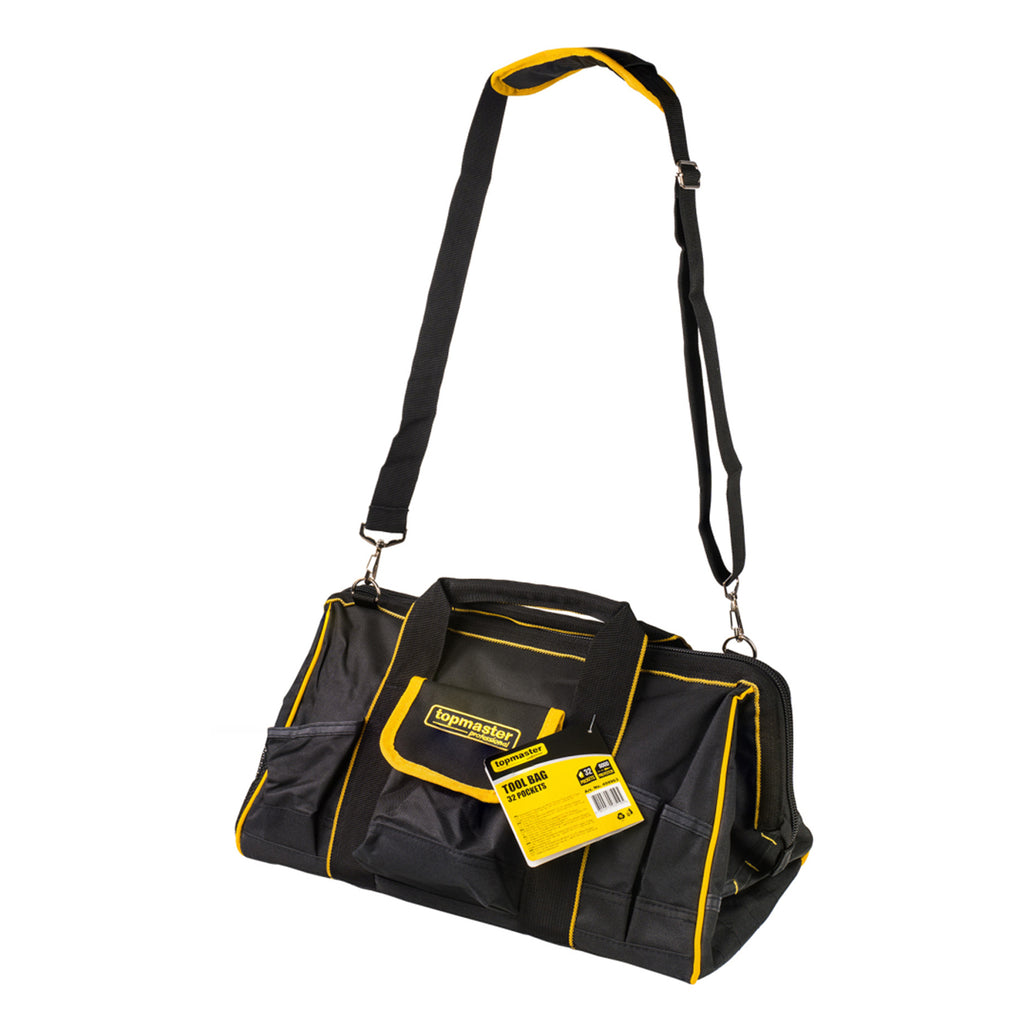 Aceasta GEANTA DE SCULE CU 32 DE BUZUNARE TOP MASTER PRO este destinata depozitarii si transportului uneltelor si accesoriilor. Geanta este realizata din poliester si are dimensiunile de 500 x 300 x 320 mm, fiind prevazuta cu 32 de buzunare. Constructia permite pastrarea uneltelor in ordine si acces rapid la acestea in timpul utilizarii.