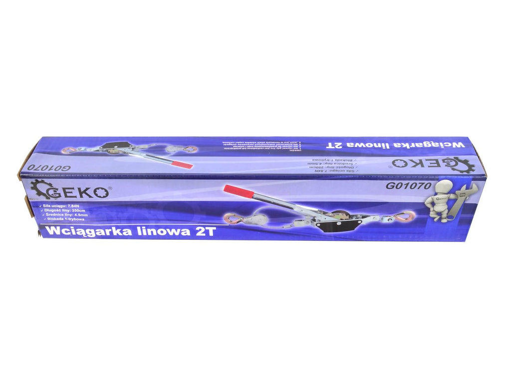 Acest INTINZATOR CU CLICHET 2T GEKO este destinat manipularii si deplasarii sarcinilor grele, precum ambarcatiuni sau vehicule, prin actionare manuala cu clichet. Dispozitivul are o capacitate maxima de incarcare de 2000 kg si este prevazut cu mecanism de siguranta cu clichet simplu.