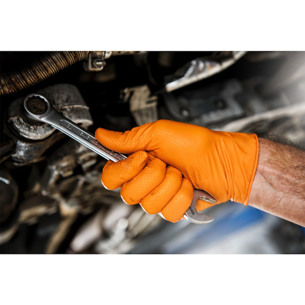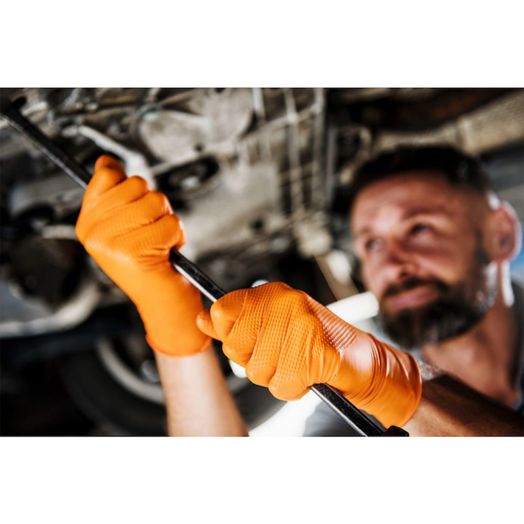 MANUSILE DE NITRIL PREMIUM MERCATOR GOGRIP ONE BY ONE PORTOCALIU, MARIMEA M, SET DE 100BUC sunt concepute pentru protectia mainilor in medii profesionale unde este necesara rezistenta ridicata la substante chimice, uleiuri si grasimi. Acestea sunt fabricate din nitril, fara latex, potrivite pentru pielea sensibila si testate conform standardelor pentru echipamente individuale de protectie de categoria III, tip B.
