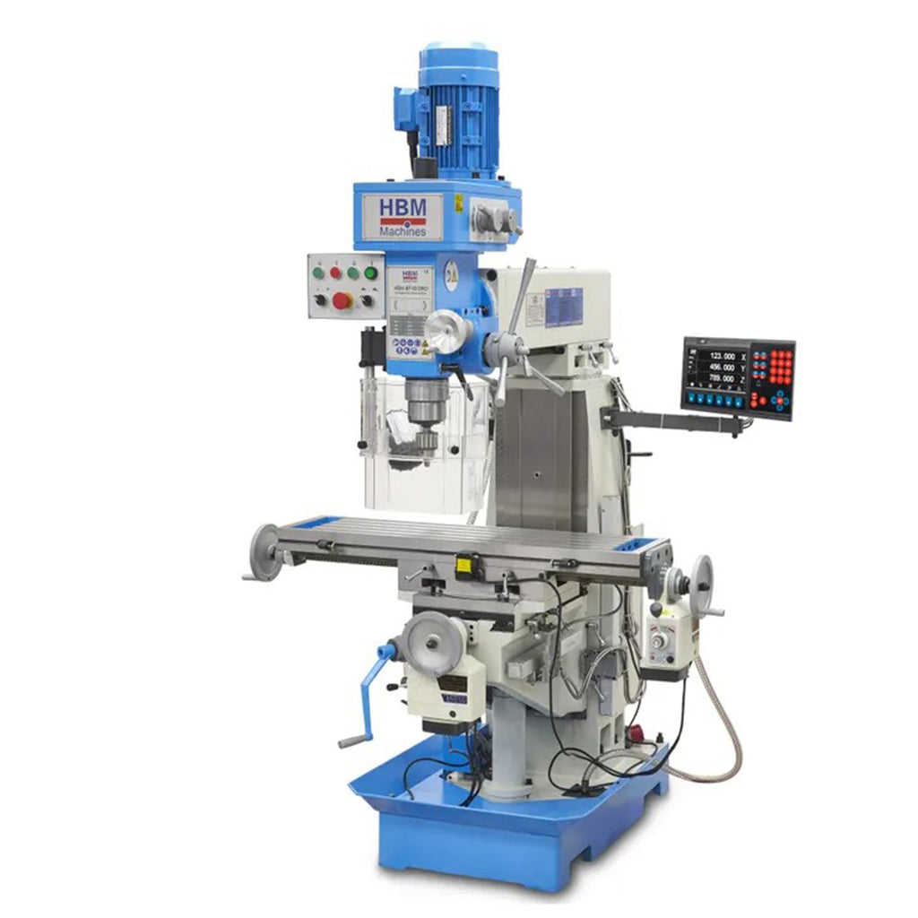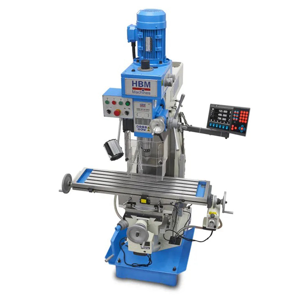 MASINA PROFESIONALA DE FREZAT SI GAURIT CU MASA MARE SI ECRAN DIGITAL BF 60 400V functioneaza la 400 V si este echipata cu mandrina ISO 40, masa cu alimentare automata si sistem digital LCD cu citire pe 3 axe. Permite lucrari precise datorita reglajului fin, iluminarii integrate si sistemului de racire.