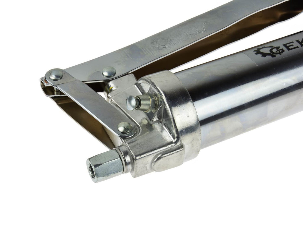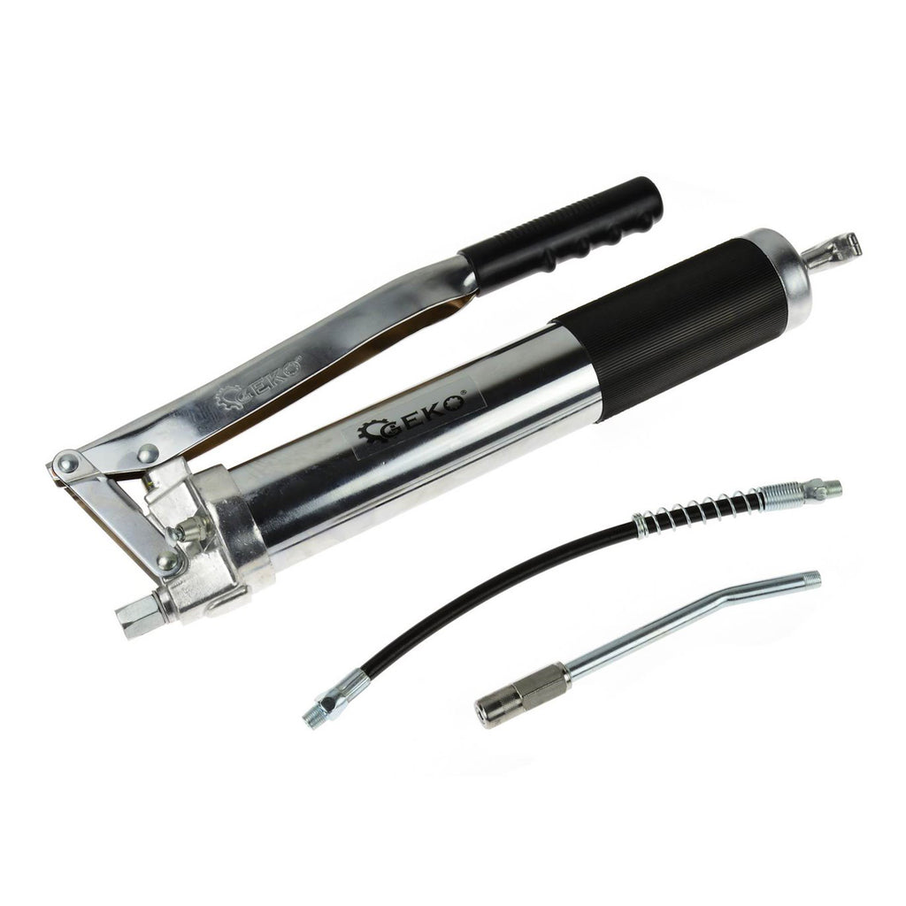 Aceasta POMPA MANUALA DE GRESAT 600ML GEKO este o pompa de gresare cu actionare manuala prin parghie laterala, prevazuta cu maner de tip T pentru utilizare intensiva. Functioneaza la o presiune de lucru de 4500 psi si poate atinge o presiune maxima de pana la 12000 psi.