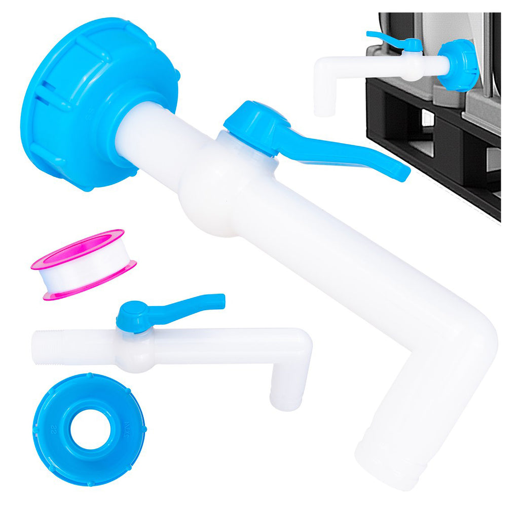Acest ROBINET CU FURTUN 25 MM LA 90° PENTRU REZERVOARE MAUSER este destinat montarii pe rezervoare IBC cu filet standard S60x6. Setul include un capac IBC cu garnitura si o supapa cu bila prevazuta cu racord pentru furtun de 25 mm, configurata cu cot de 90° pentru directionarea controlata a fluxului de lichid in timpul golirii.