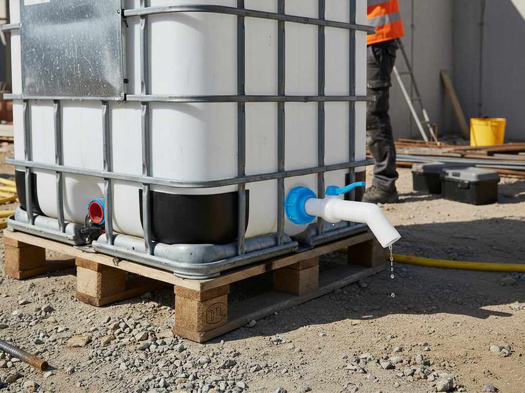 - Setul contine: Capac IBC S60x6 cu garnitura; Robinet cu bila cu racord pentru furtun 32 mm, cot 45°; Banda de etansare PTFE 12 mm