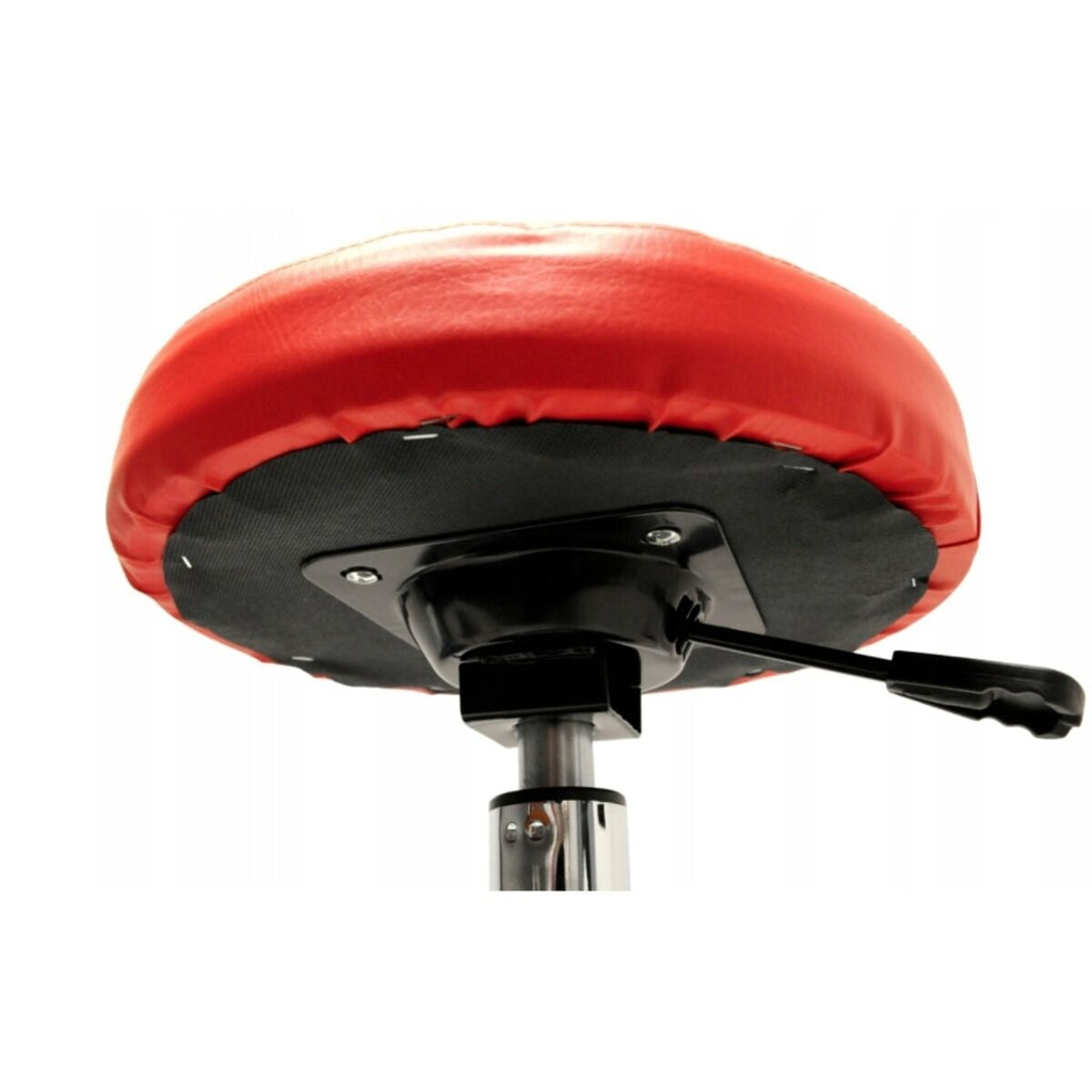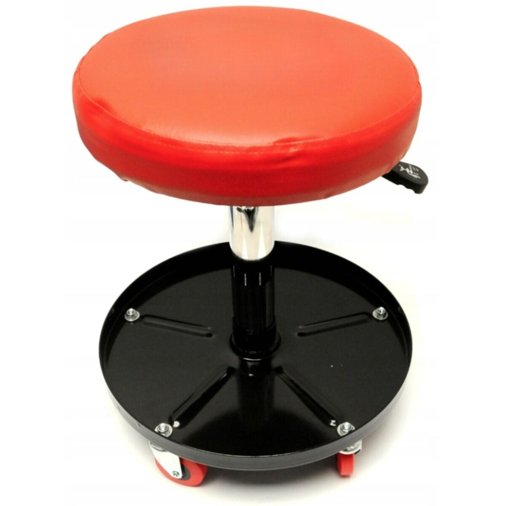 Acest SCAUN MECANIC AUTO CU REGLAJ INALTIME INVENTO este destinat utilizarii in ateliere auto, service-uri si garaje pentru lucrari care necesita mobilitate si acces facil la unelte. Scaunul este prevazut cu reglaj pneumatic al inaltimii, permitand ajustarea intre 400 mm si 540 mm. Sezutul are diametrul de 300 mm si este montat pe o structura din otel, iar deplasarea este posibila cu ajutorul a cinci roti pivotante. In partea inferioara este prevazut un raft pentru scule cu diametrul de 385 mm. Capacitatea maxima de incarcare este de 130 kg.