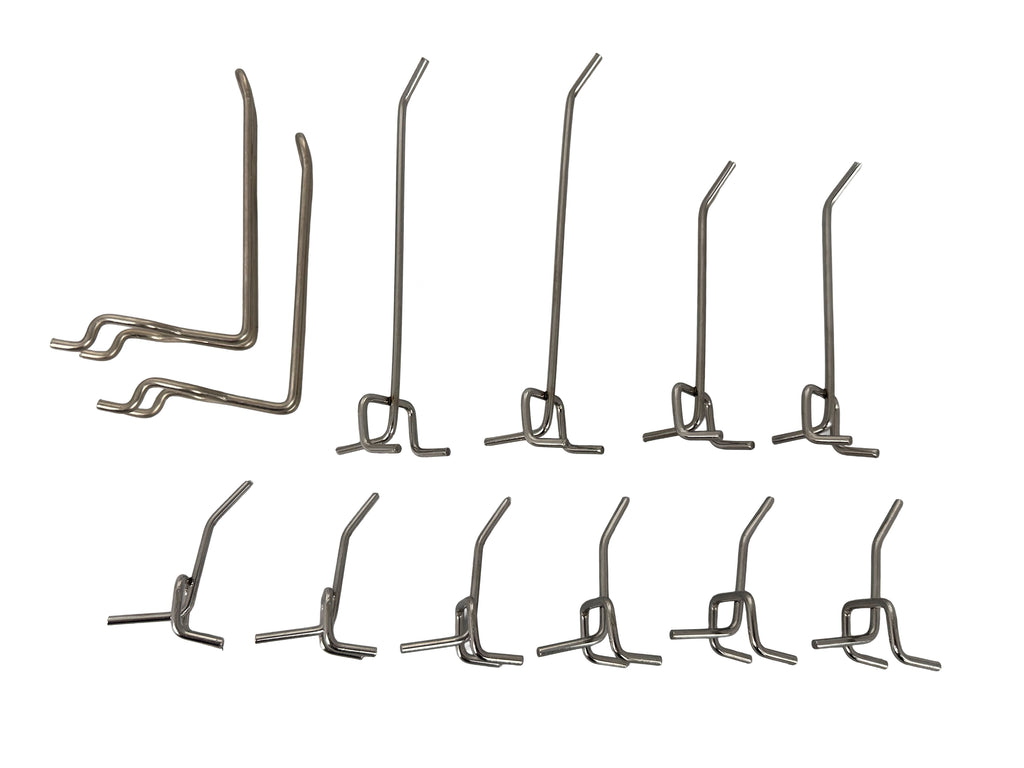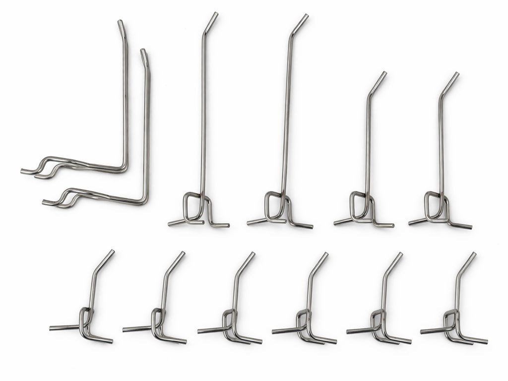SET 18 CARLIGE METALICE PENTRU PANOU SCULE, ORGANIZATOR ATELIER