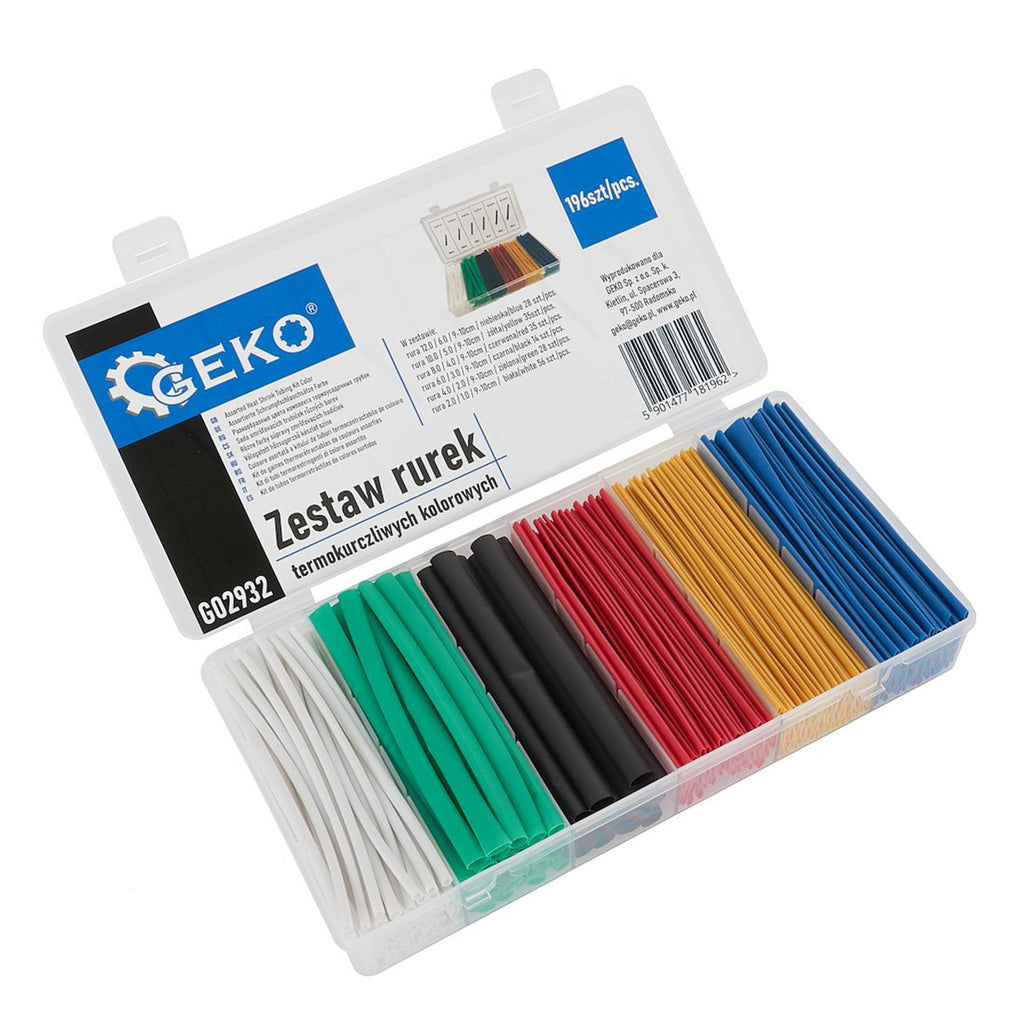 SET 196 TUBURI MANSOANE TERMOCONTRACTIBILE COLORATE PENTRU CABLU, 6 DIMENSIUNI - GEKO