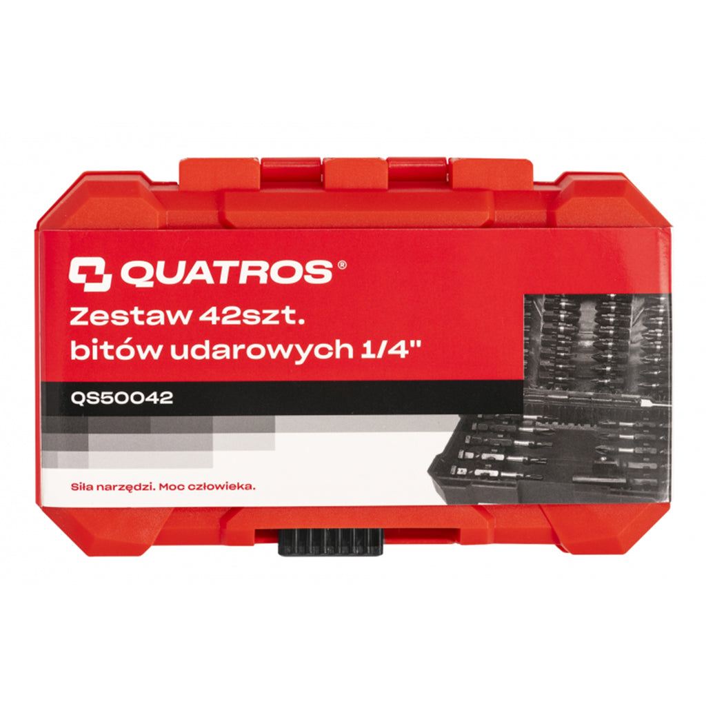 SET BITI DE IMPACT 42 PIESE contine 32 de biti pentru surubelnita cu actionare de 1/4" si lungime de 25 mm, fabricati din otel S2, in variantele PH1 (3 bucati), PH2 (3 bucati), PH3 (2 bucati), PZ1, PZ2 (8 bucati), PZ3 (3 bucati), T10, T15, T20 (2 bucati), T25 (4 bucati), T27, T30, T40 si SL6.