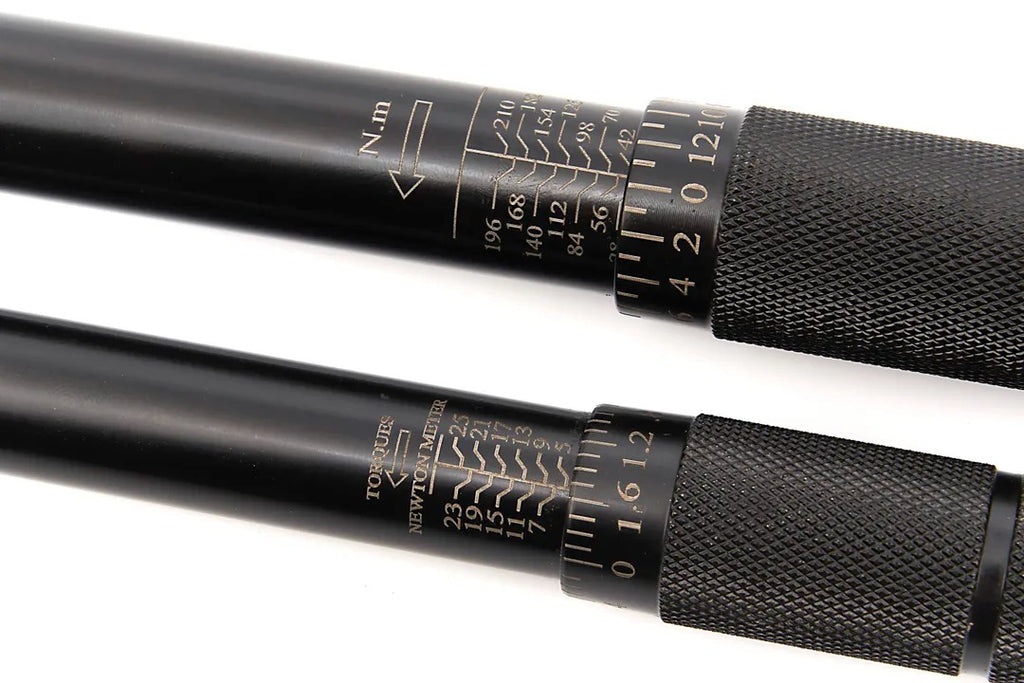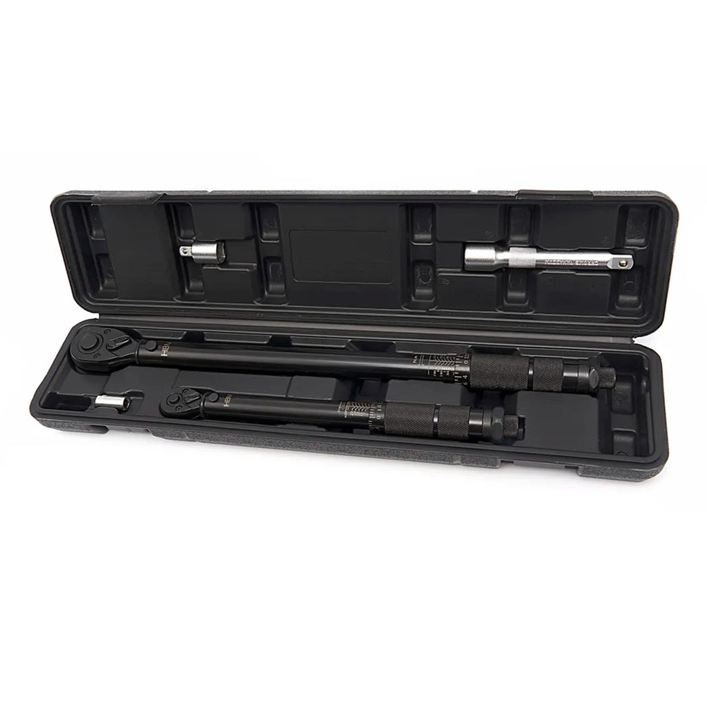 Setul include o prelungire rigida de 125 mm pentru antrenare 1/2 inch, care permite accesul in zone greu accesibile fara a compromite controlul momentului de strangere. Este inclusa o conexiune de 1/4 inch pentru utilizarea accesoriilor corespunzatoare si un adaptor destinat compatibilitatii intre antrenari diferite. Intervalul cuplului este de la 2 Nm (cu accesorii potrivite) pana la un maxim de 210 Nm