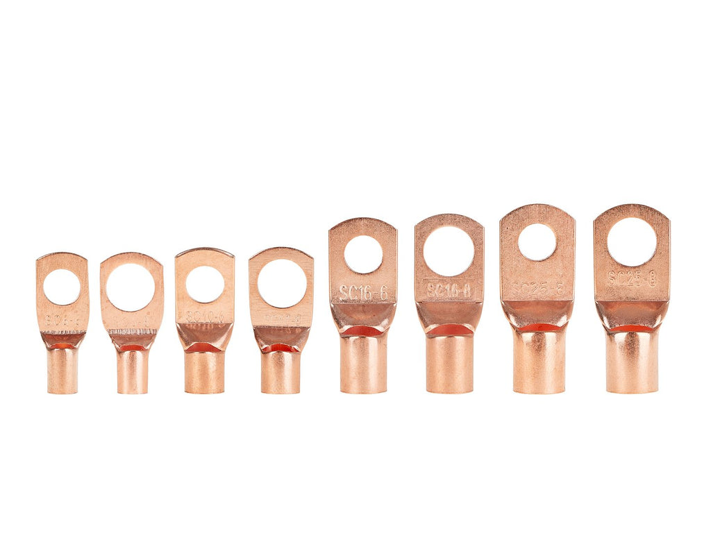 Acest SET PAPUCI CONECTORI ELECTRICI DIN CUPRU 140 BUC este destinat realizarii conexiunilor electrice prin sertizare si fixare cu surub. Setul contine papuci de cablu tip SC realizati din cupru, compatibili cu conductori cu sectiuni de 6 mm², 10 mm², 16 mm² si 25 mm², precum si tuburi termocontractabile pentru izolare si protectie suplimentara.