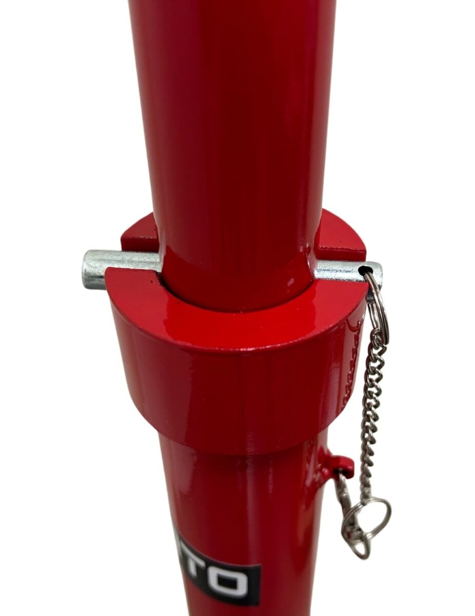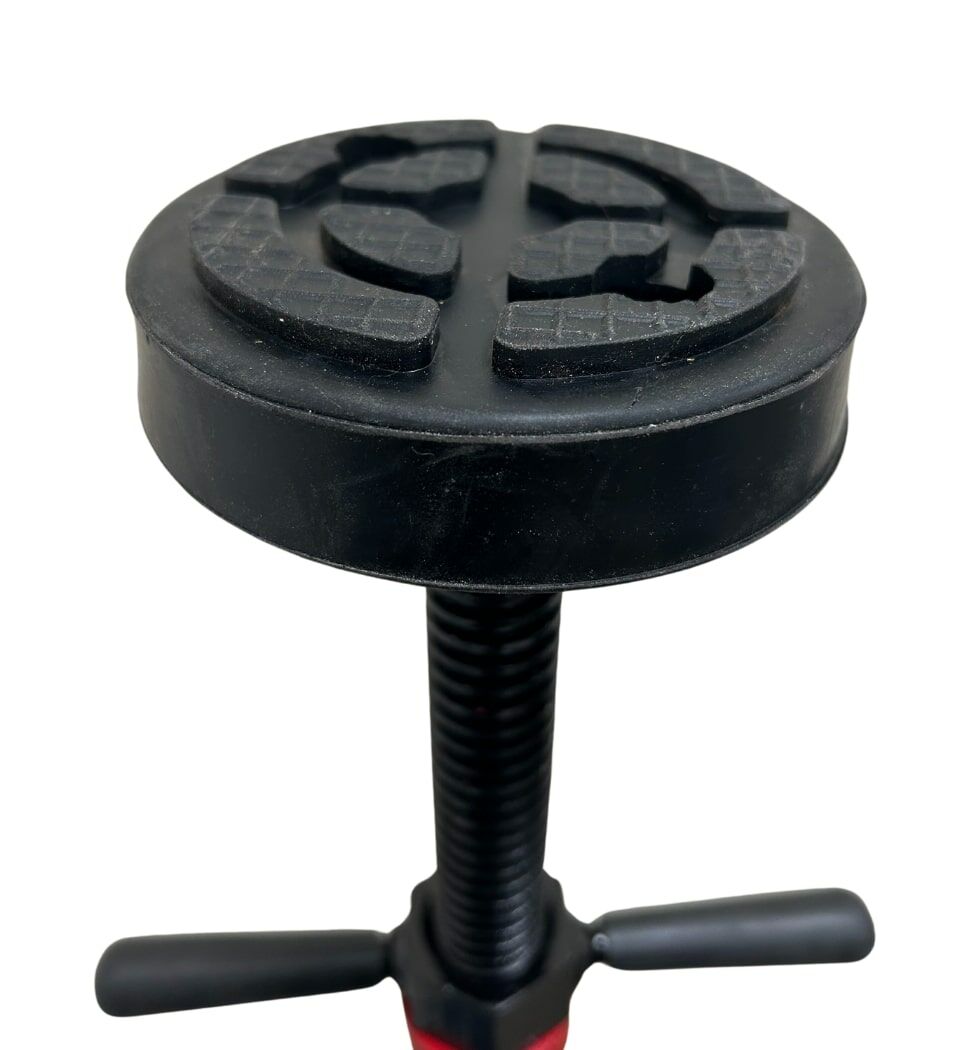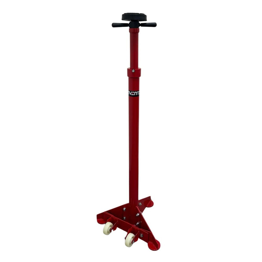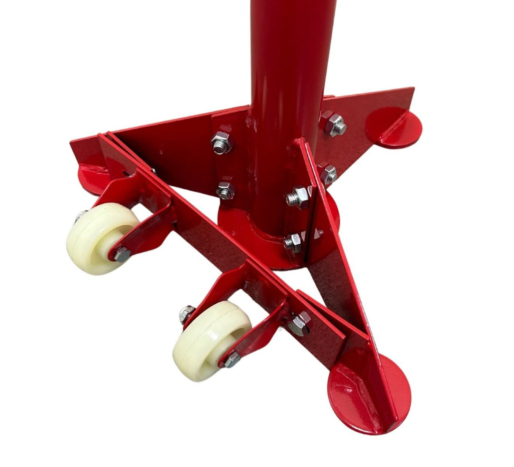 SUPORT REGLABIL CAPRA INALTA 750KG CU ROTI ste prevazut cu roti pentru mobilitate usoara si are o capacitate maxima de incarcare de 750 kg. Inaltimea poate fi reglata intre 121 cm si 186 cm, utilizand o piulita fluture montata pe rulment, care permite ajustarea chiar si sub sarcina. Este conceput pentru lucrari in ateliere auto, fiind util in sustinerea pieselor grele, interventii la elevatoare cu un singur stalp sau demontarea si montarea cutiilor de viteze. Sistemul cu rulment reduce uzura surubului si permite operarea usoara in timpul utilizarii frecvente.