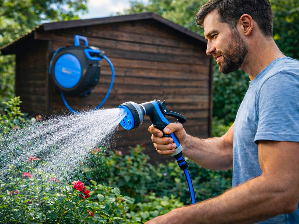 TAMBUR AUTOMAT SKY-LINE CU FURTUN DE GRADINA 30M 1/2", PERETE, CU PISTOL 7 FUNCTII - GEKO