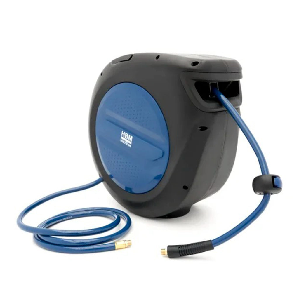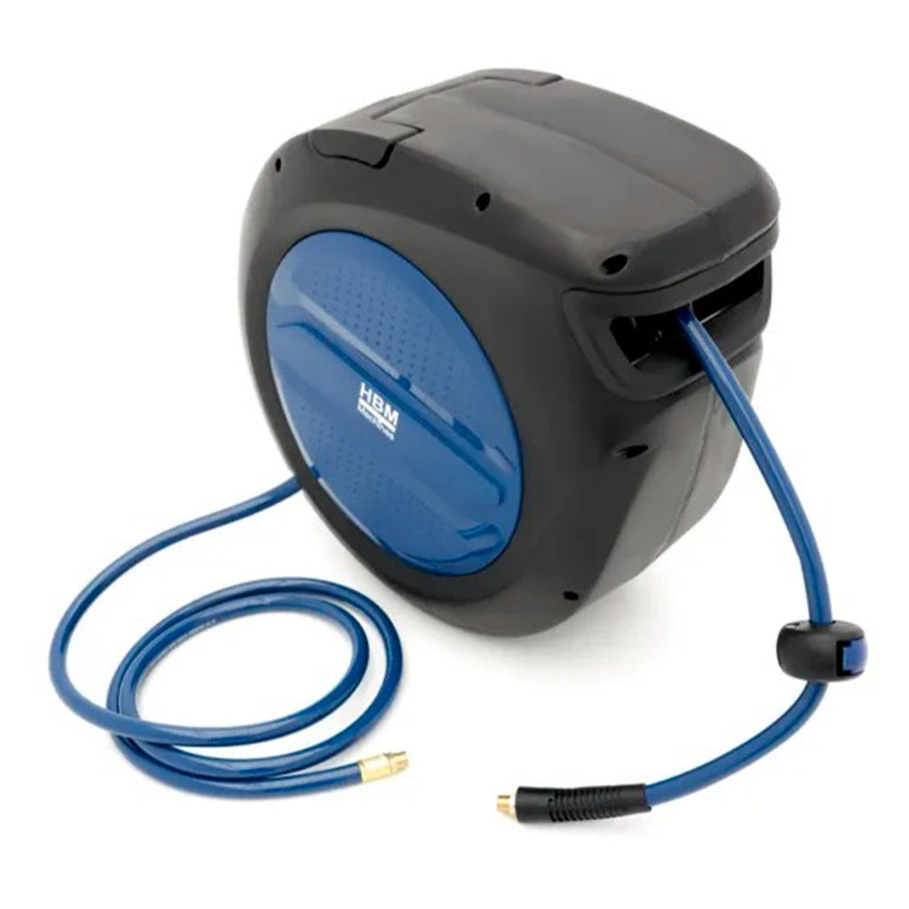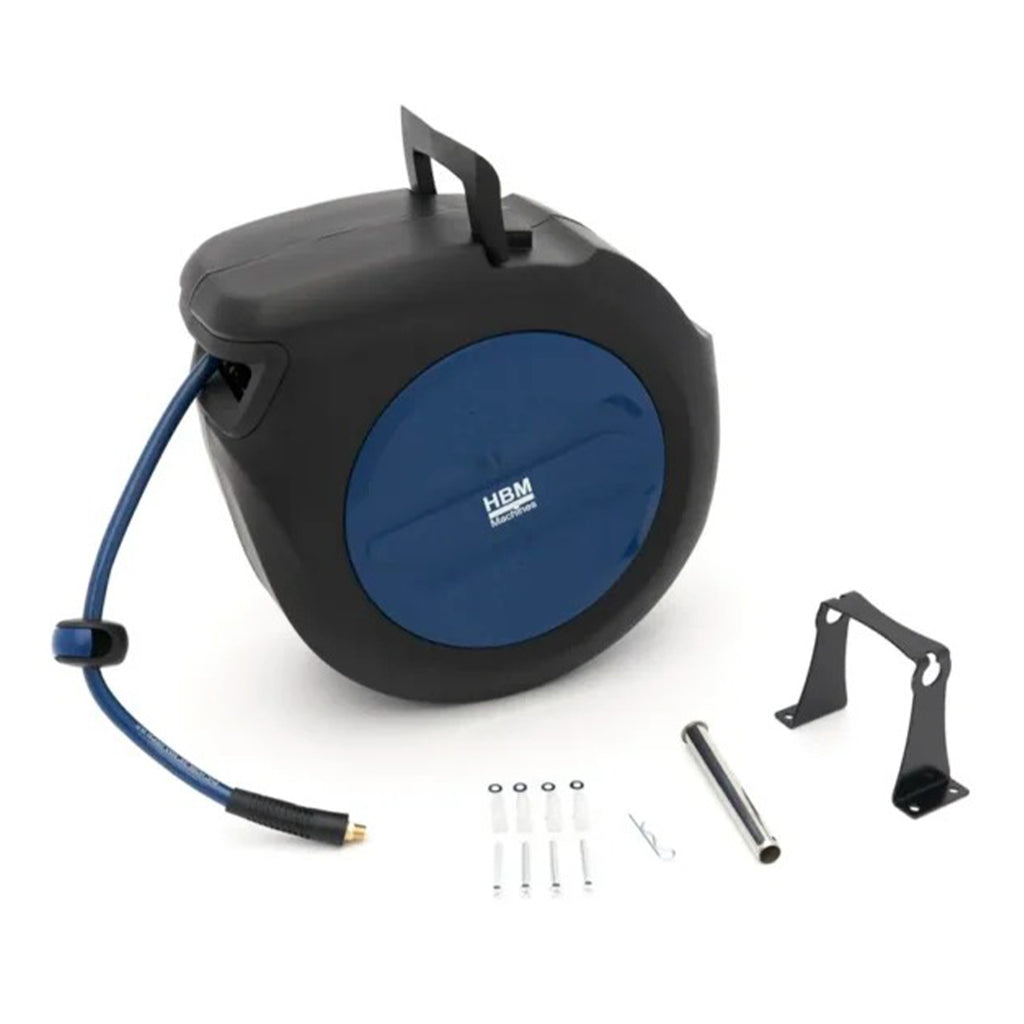 Acest TAMBUR FURTUN AER 9.5 X 14.5MM 15M HBM este echipat cu un suport de montare pivotant la 180 de grade. Sistemul automat de blocare si retragere faciliteaza manipularea furtunului. Acesta este construit pentru a rezista la presiuni de pana la 16 bar. Furtunul are un diametru interior de 9.5 mm si un diametru exterior de 14.5 mm. Lungimea acestuia ajunge pana la 15 metri. Conexiunea furtunului este de 3/8”. Dimensiunile totale sunt 33 cm x 18 cm x 37.5 cm, iar greutatea poate ajunge pana la 4.8 kg.
