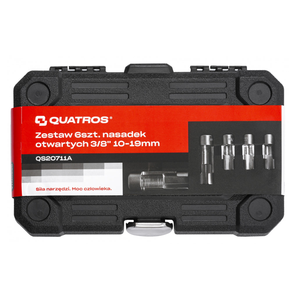 Setul include chei cu actionare de 3/8", in dimensiunile 10 mm, 11 mm, 12 mm, 14 mm, 17 mm si 19 mm. Toate piesele sunt fabricate din otel crom-vanadiu (Cr-V), oferind rezistenta la uzura si precizie in utilizare.