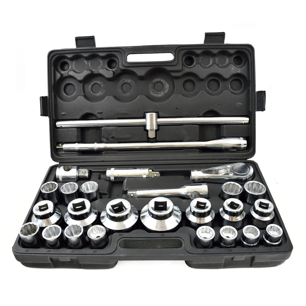 - 17 x tubulare bihexagonale 3/4": 21 mm, 22 mm, 23 mm, 24 mm, 26 mm, 27 mm, 28 mm, 29 mm, 30 mm, 31 mm, 32 mm, 34 mm, 36 mm, 38 mm, 41 mm, 46 mm, 50 mm