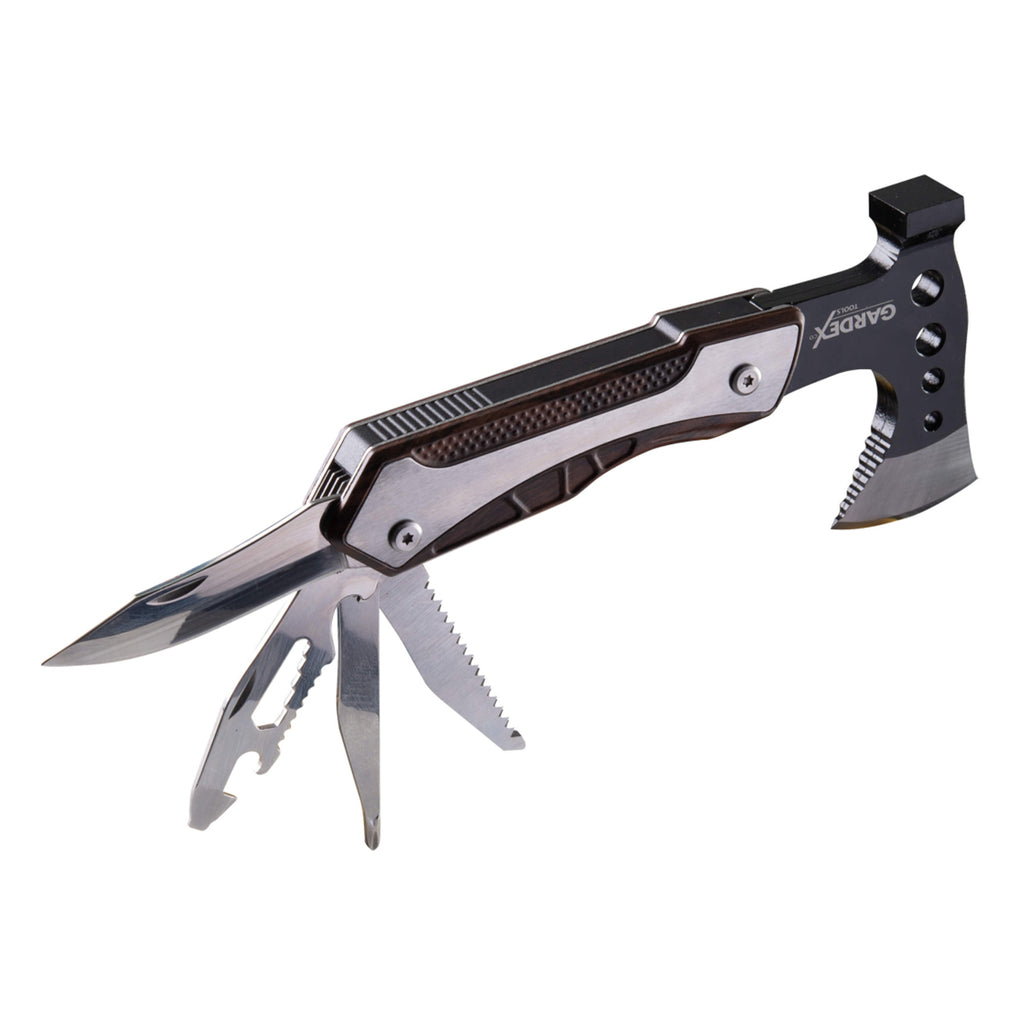 Aceasta UNEALTA MULTIFUNCTIONALA TOPOR, BRICEAG PENTRU CAMPING AXE GX GARDEX este destinata utilizarii in activitati de camping, pescuit si lucrari de gradina si este realizata cu maner din lemn. Produsul are o lungime de 20 cm, o inaltime de 10 cm si o latime de 3 cm, avand o greutate de 400 g, ceea ce permite manevrarea si transportul facil. Dimensiunile compacte fac unealta potrivita pentru depozitare in rucsac, trusa de scule sau in autovehicul.
