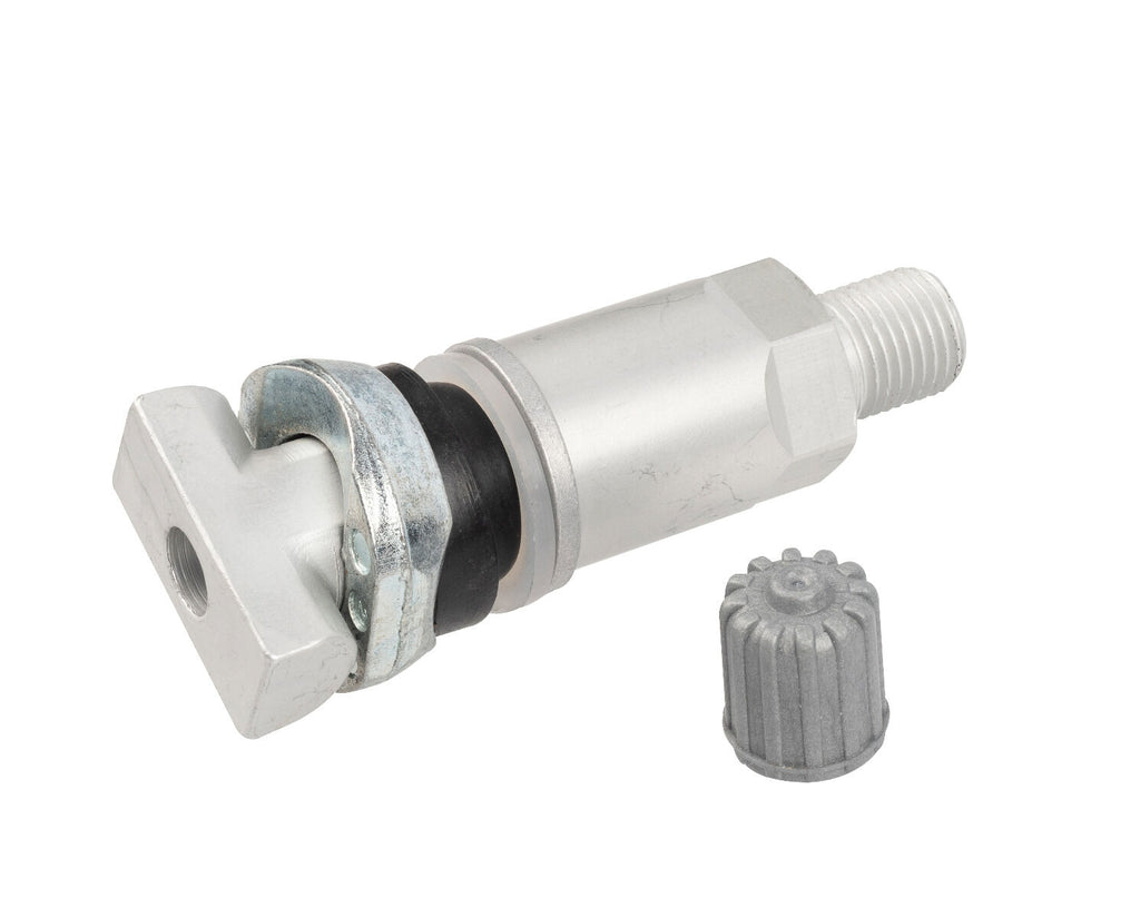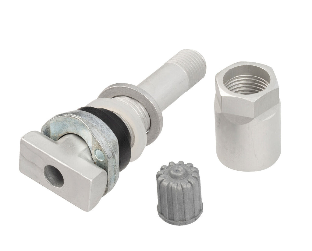 VALVA METALICA PENTRU SENZOR TPMS 562-3912 este realizata din aluminiu si este compatibila cu senzorii Schrader Gamma TPMS. Are o inaltime totala de 49 mm, dintre care 35 mm deasupra rotii, o latime a bazei de 18 mm si un orificiu de montaj de 11,3 mm. Cuplul de strangere recomandat este de 4 Nm.